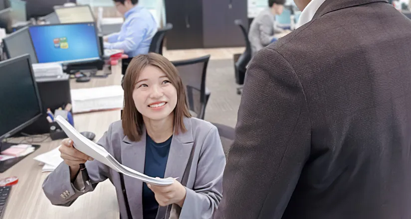 契約管理課では、お客様が契約から物件の引渡しまで安心して不動産購入を進められるように、手続きのサポートを行います。金融機関や司法書士など不動産に関わる様々な業種の方とのやりとりを慎重に行い、お客様のご購入される大切な物件をできるだけ最短で引渡せるよう、進捗の管理をします。