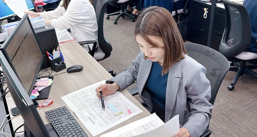 チーム内で書類の間違いがないかダブルチェックを行います。 -