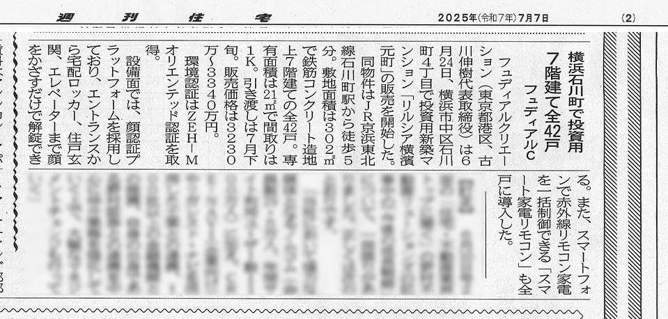 この度、2025年7月7日付週刊住宅(株式会社週刊住宅タイムズ発行)に、当社記事が掲載されました。
