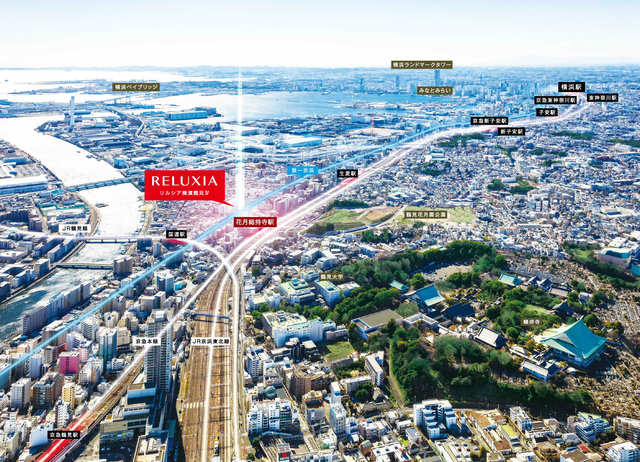 「花月総持寺」は、京急本線の横浜~品川間の居住価値が高いエリアにあり、総持寺の玄関口という特性を有する居住区です。横浜はもちろん、都心へのアクセス性もよく、通勤・通学はもちろん、オフタイムの行動範囲も広がるロケーション。ここに、駅近立地の利便性を享受した充実のプライベートステージが誕生します。