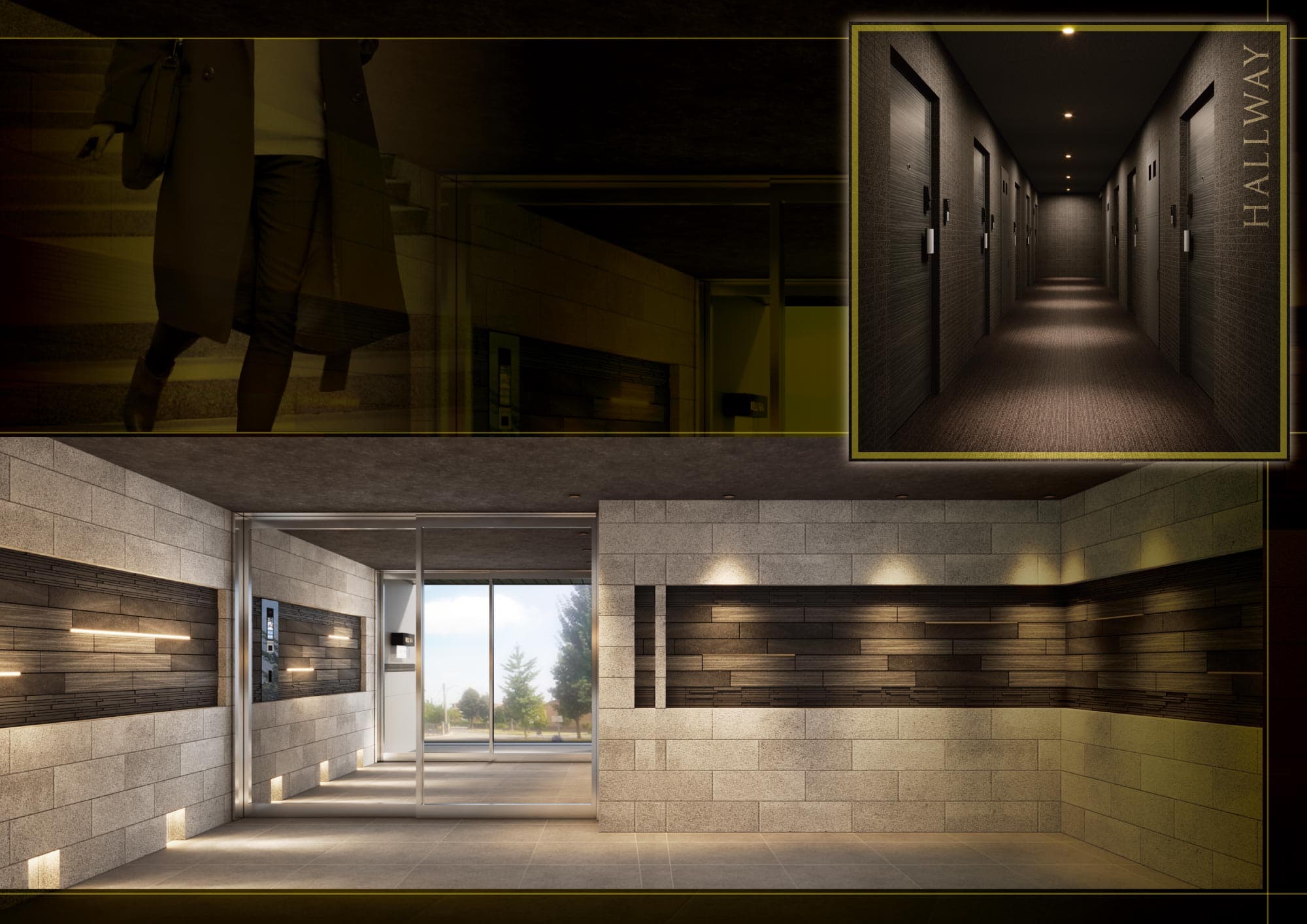 ホールへと足を踏み入れるとシックで落ち着きのある内廊下が、