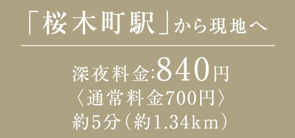 ※タクシー料金は一般社団法人「東京ハイヤー・タクシー協会」にて検索。検索結果は「距離制運賃(上限運賃)」に基づいており、 「時間距離併用運賃(上限運賃))」は含みません。1,096mまで500円、以降255mごとに100円加算しています。 深夜早朝割増は22時~5時まで2割増で計算しています。 ※交通状況などの影響により実際の料金とは一致しない場合がありますので、目安としてご認識ください。