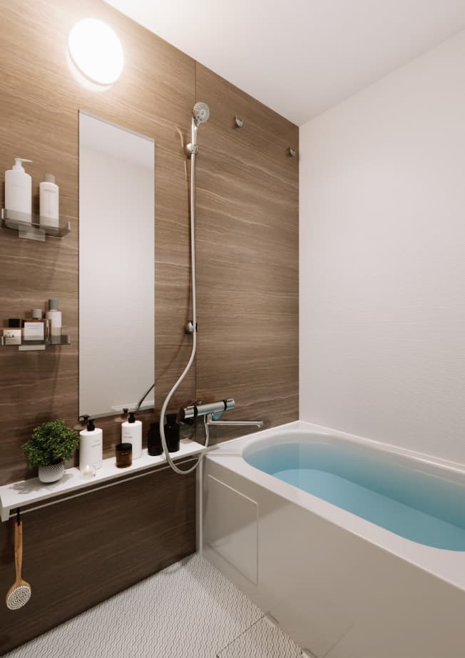 浴室の照明には、明るくて長持ちするLED照明を採用しました。