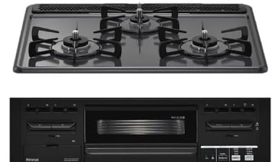 3品同時に調理のできる3口ガスコンロ。魚を焼くのに便利な無水片面焼グリル付きです。