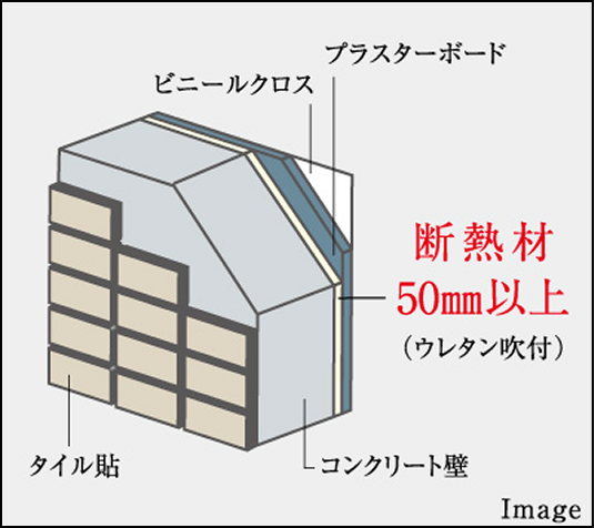 外壁・戸境は、外部や隣戸からの生活音を遮る厚みでプライバシーにも配慮しており、より過ごしやすい住空間を創り出します。 ※外壁320〜340㎜、戸境壁及び乾式耐火間仕切壁136㎜