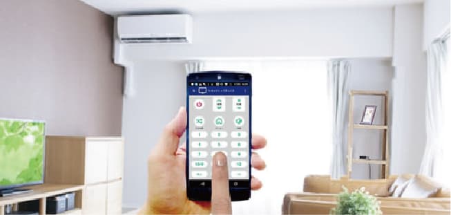 外出先からスマホで家電を操作し、帰宅前にエアコンで部屋の温度を快適にしたり照明をつけたりできます。