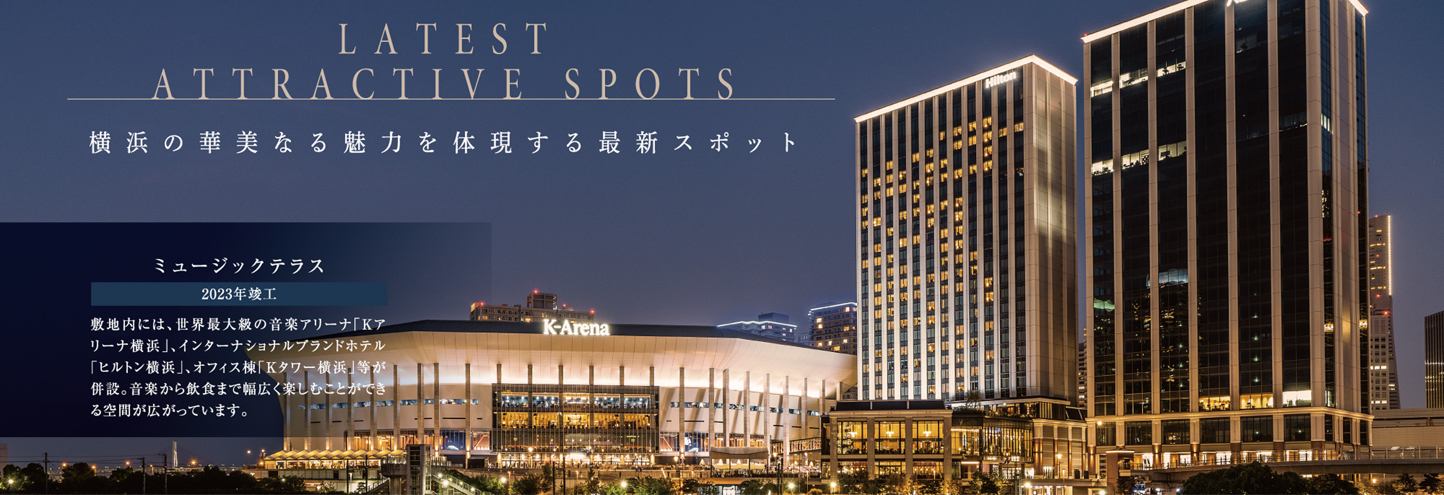 スポーツ観戦からコンサートまで多彩なエンターテインメントを堪能できる、横浜の新たなスポーツや文化の新たな発信地です。