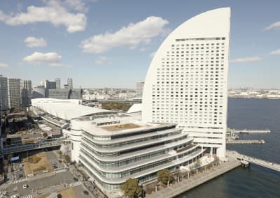 ヨットを模した外観のホテルや会議室、展示場、ホールなど幅広い機能を備えた、年間400万人を超える来場者が訪れる国内最大級の複合MICE施設です。