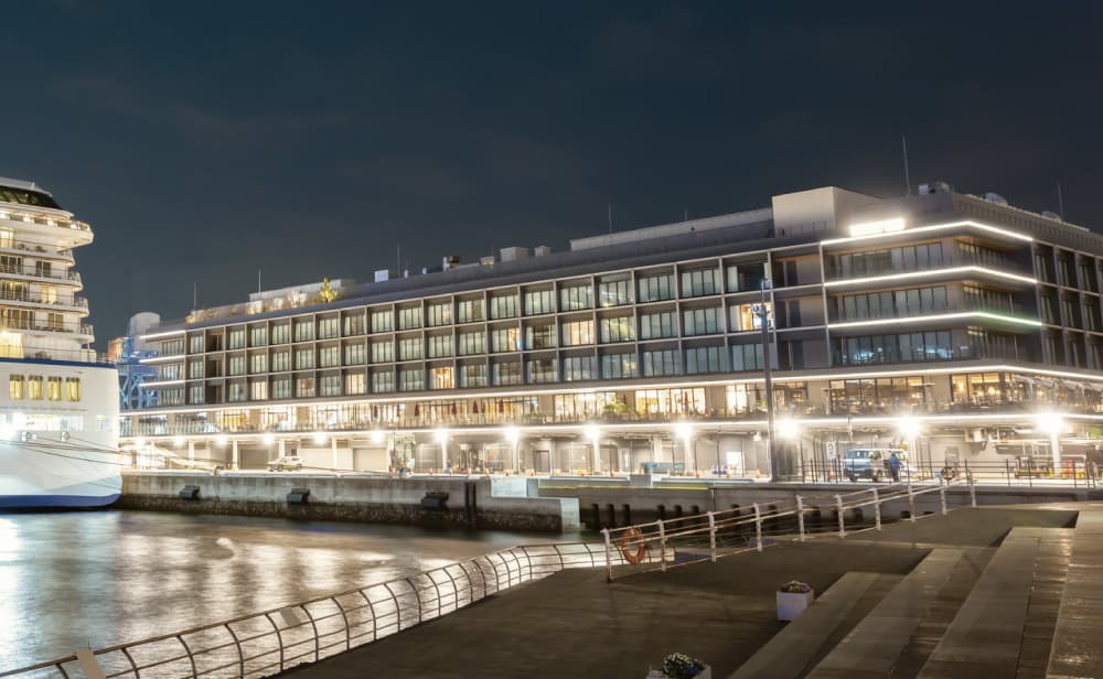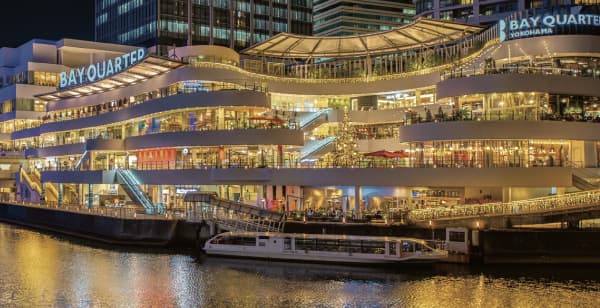 海を眺めながら食事やカフェが楽しめ、滞在型のリゾートホテルまで完備する複合施設。横浜を巡る「シーバス」の乗り場も併設されています。