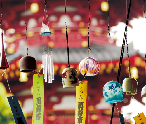例年7月頃に開催される、川崎大師の行事です。全国各地の文化を継承した、鋳物やビードロを活かした伝統工芸品から、 近年の文化を反映したアイテムまで、様々な風鈴が揃います。
