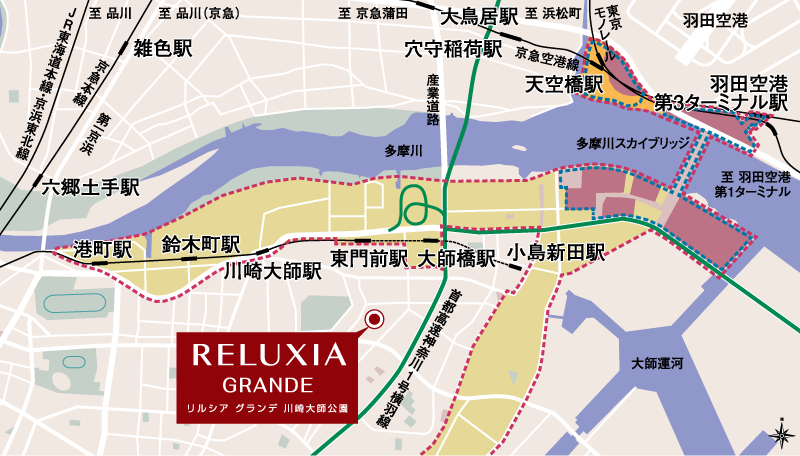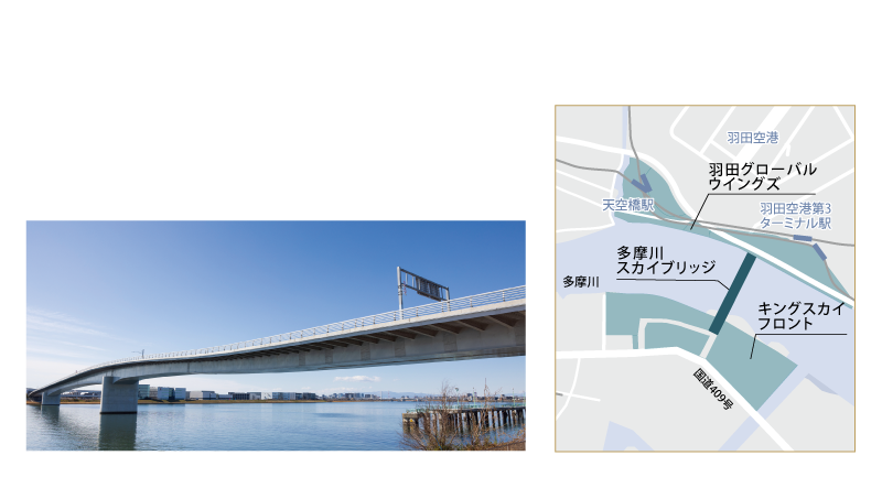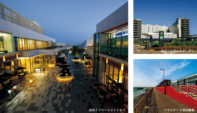 「未来にはばたくまちづくり」が進む羽田グローバルウイングズ。第1ゾーンでは先端・文化発信拠点としてイベントホールを設けた羽田イノベーションシティが、第2ゾーンでは日本の魅力を凝縮した商業施設などが集結した羽田エアポートガーデンが開業。第2ゾーンの多摩川沿いには、展望テラスや散策路が整備されたソラムナード羽田緑地が整備されています。