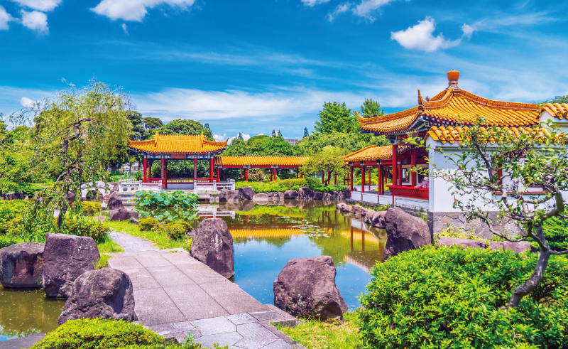 緑豊かな園内で、散策やテニス、野球、プールなど健康的な時間を過ごすことができます。また中国式自然山水庭園の「瀋秀園」では中国建築を親しむことができます。