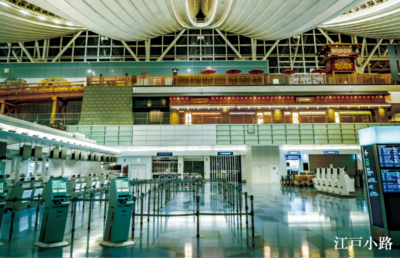 ターミナル内には、「江戸の町並」を再現した商業施設である江戸小路があります。日本の文化と伝統の技を伝える多くの物販店舗や飲食店が並びます。