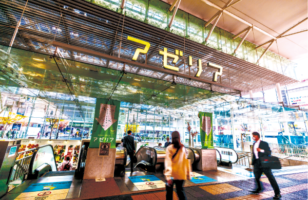 川崎駅直結の大規模な地下街。ブティックや美容サロン、スイーツ店、レストランなど、バラエティーに富んだ店舗が並んでいます。