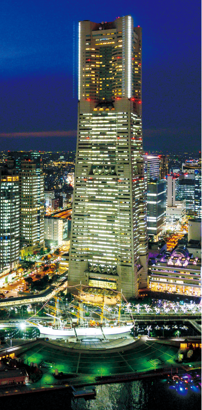 地上70階・高さ296mのタワー棟を中心に、オフィス、ホテル、ショッピングモールや展望フロア、多目的ホールなどを備えた、横浜の景観を象徴する存在です。