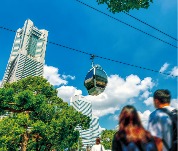 JR桜木町駅前からみなとみらい21の新港地区にある運河パークを結ぶ、日本初の都市循環式ロープウェイです。横浜の眺望を望みながら空中散歩を楽しめます。